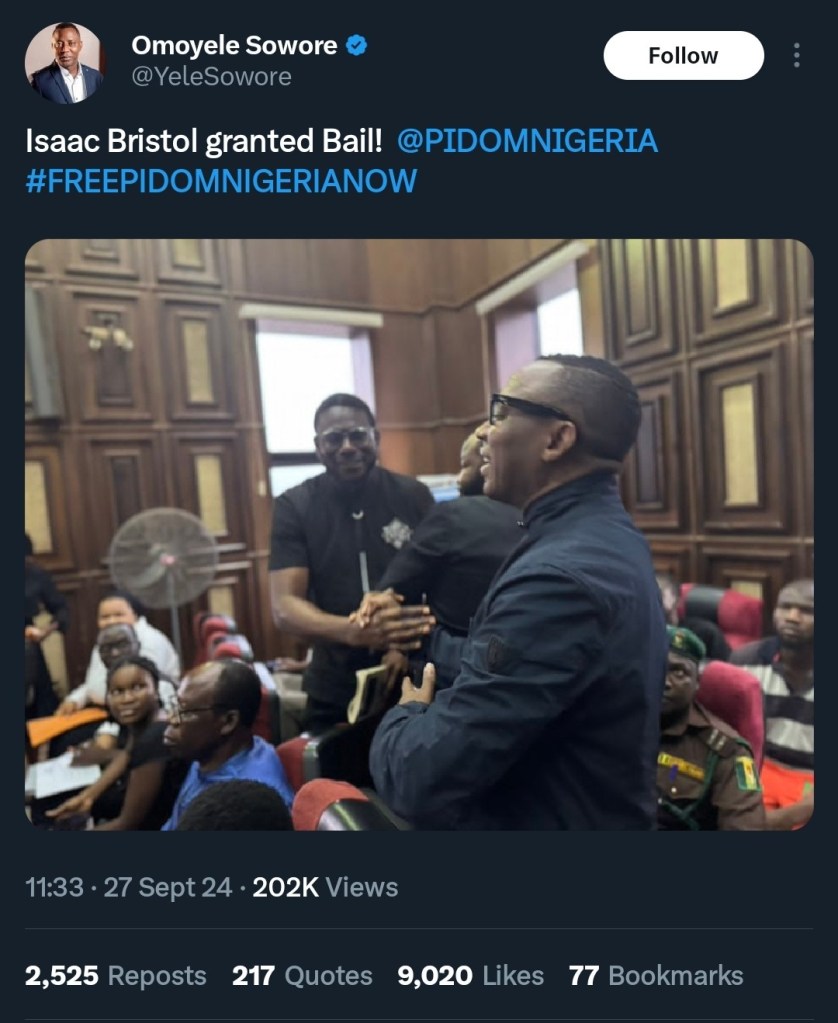 “Isaac Bristol granted Bail! @PIDOMNIGERIA #FREEPIDOMNIGERIANOW”