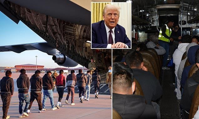 The flight was one of three that were set to take off on Thursday, alongside two Guatemala-bound Air Force C-17s carrying over 150 people, as part of what Trump has described as the largest mass deportation effort in US history.